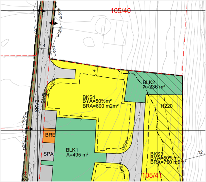 Illustrasjon 1: Utsnitt av plankart på høyring 16.12.2024 – 16.01.2025.